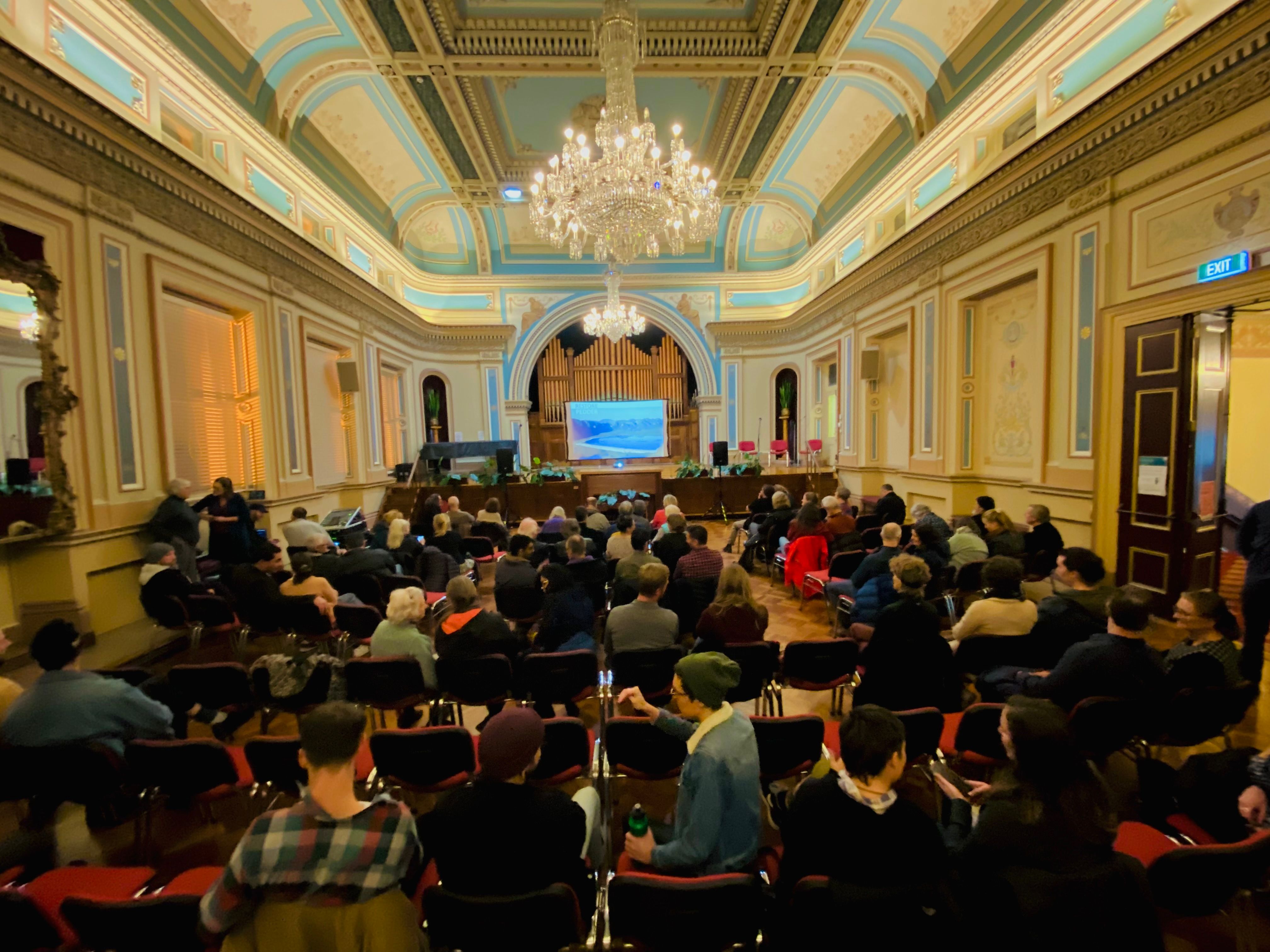 Hobarts Town Hall has played host to the most significant moments of the Lake Pedder journey, from audiences spilling into the halls night after night to watch the great Olegas Truchanas’s slideshows, the courageous founding of the world’s first green political party, the United Tasmania Group. On November 26th the Restore Pedder campaign again filled (to COVID capacity) the hall in recognition of the growing calls to restore the national icon. After an emotive welcome to country from the Tasmanian Aboriginal Centre’s Sinsa Mansell, the honorable Lord Mayor Anna Reyonlds opened proceedings with the history of the halls significance and the visions of the Hobart City Council to rewild local degraded environs, aligning with the vision of restoring Pedder. Christine Milne AO and Lake Pedder Restoration Incorporation Convenor spoke on the ecological and political implications and benefits of the projects, as well as the potential for social wellbeing, job creation and regenerative tourism opportunities. The Lake Pedder feature on from channel 10’s The Project was shared as beverages were refilled before campaigner Tabatha Badger spoke for the next generation, those who have never seen the original Lake Pedder but are calling for its restoration in a bid to reverse the global trend of destruction amid climate and biodiversity crisis. Concluding Bob Brown called on us all to get active in the inspiring campaign “….Trump is out and the UNs Decade of Ecosystem Restoration is in!”