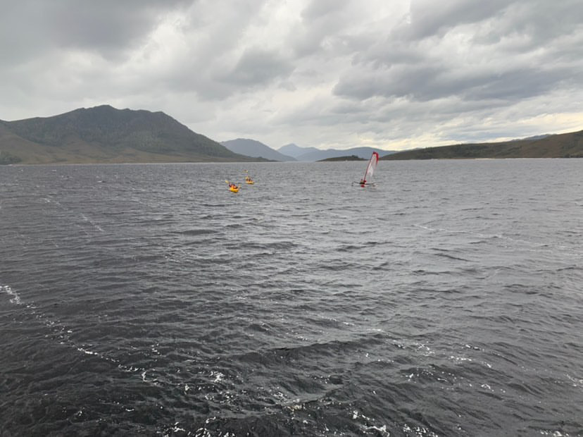 The inaugural Paddle for Pedder saw twelve kayakers battle strong winds whipping up white caps across the impoundment waters.