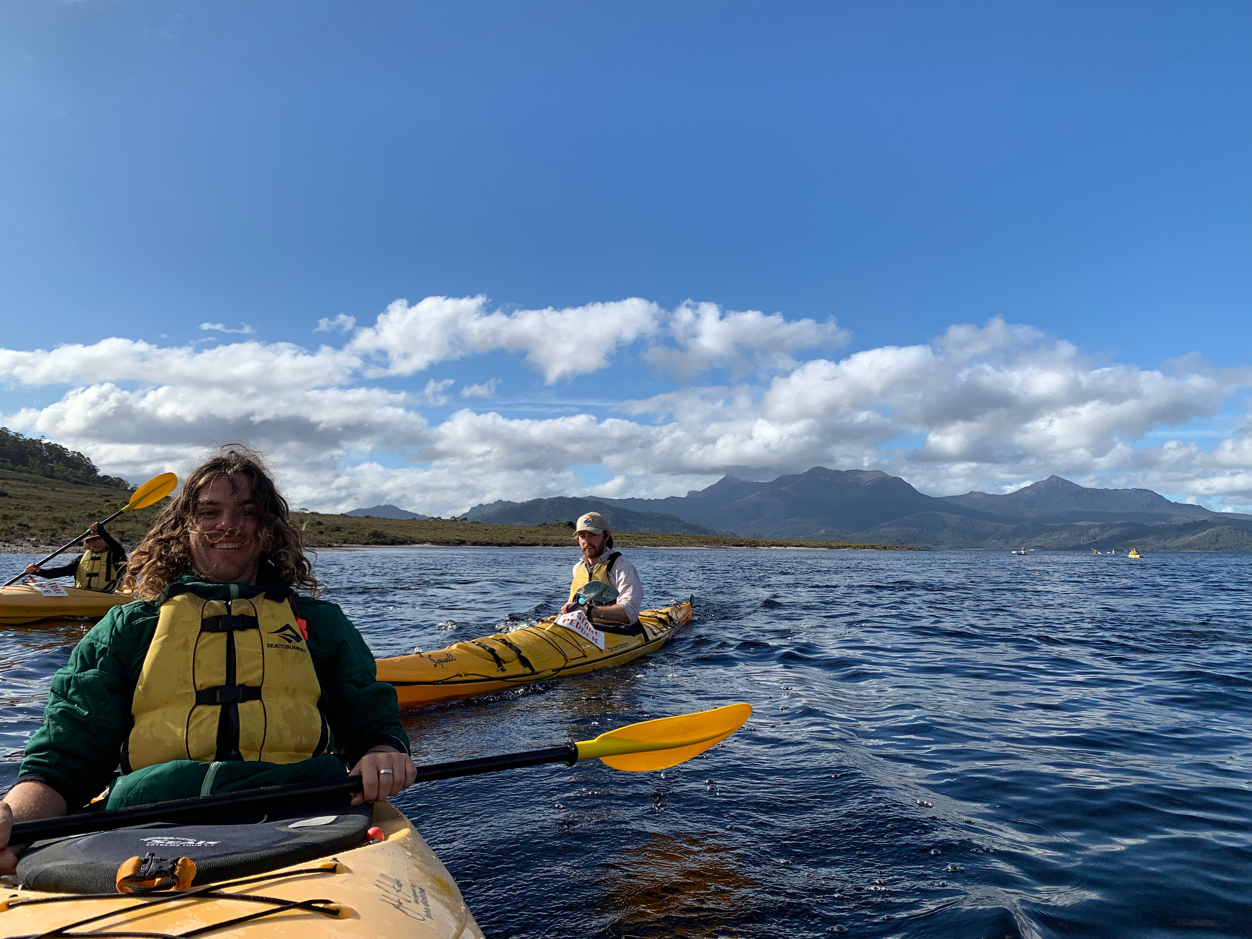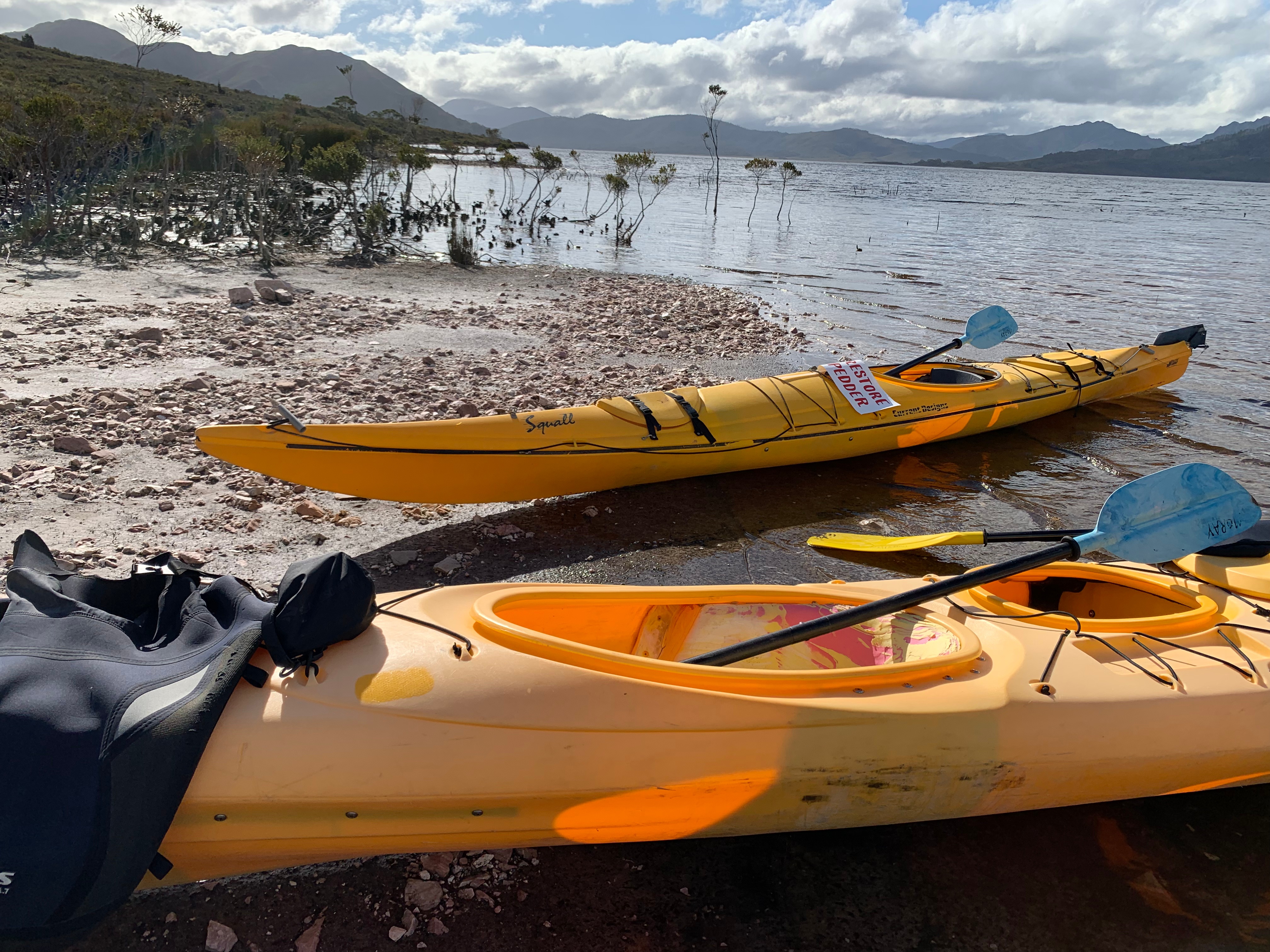We paddled along the shoreline before hopping over to Scotts Peak Island where we traversed the waterline while admiring the 669m peak amongst the blue skies we were gifted that day. One of our paddling party had visited the original Lake Pedder and surrounds prior to impoundment in 1972, this was their first return to the area since it was flooding. The rest of us aimed to imagine tramping amongst the magnificent peaks and ranges around us without the stagnant body of water present underneath us. We stopped for lunch on a sandy spot below the peak, and admired as a white-bellied sea eagle greeted us from the skies. We head back along the edge of Scotts Peak Island before heading back towards the boat ramp with a stunning view of the Arthurs Range in the distance.